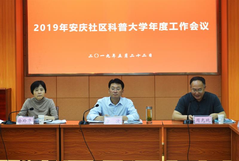 最后,方波主席从三个方面对2019年的工作进行了安排和部署。他强调:一要高度重视科技强国建设,明确社区科普大学的意义,要因地制宜地将社区科普大学工作与党建群建等工作有效融合,创新性地开展工作;二要从市社区科普大学总校、各县市区分校、各社区教学点三个层面明确新时期我市社区科普大学工作的总体任务。要加强总校对各分校督促检查工作的力度,各分校要加强基础设施及科普讲师队伍建设、社区专题培训示范教学工作的组织与开展、教学计划设置的科学化和规范化、教学资料的收集和整理等方面工作;三要坚持以问题为导向,以全国农民科学素质网络知识竞赛、安徽省全民科学素质网络知识擂台赛、市全国科技活动周科普知识微信有奖竞答以及安庆“最美科技工作者”评选与点赞等活动为载体,以提高群众满意度为目标,加强信息宣传,切实增强我市社区科普大学办学水平,让科普成果惠及更多社区居民。
