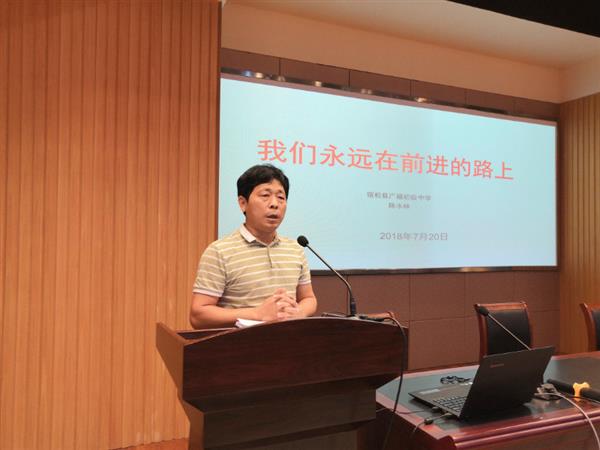 宿松县广福初级中学副校长陈水林回顾了自己几天培训的经历,指出,人生最美是相遇,几天的培训,遇见了智慧的专家、敬业的同行,大家在一起交流探讨,确实受益匪浅。并就“如何走好校长之路”交流了自己的体会,指出:校长既要正直,敢于为教职工仗义执言;又要勇于担当,用自己默默的努力换取学校的发展;更要有情怀,在规矩的基础上人文治校。