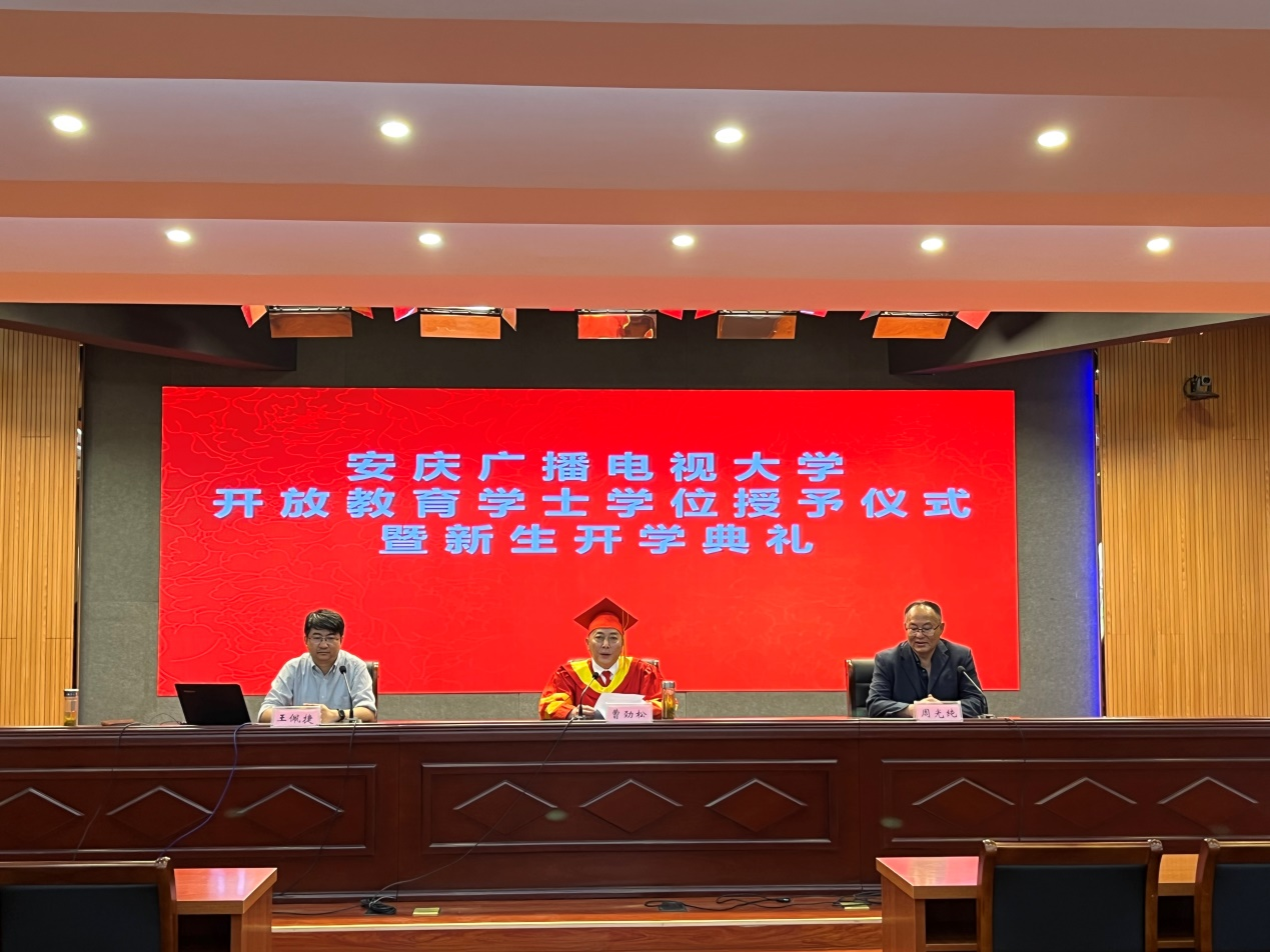 典礼全程以网络直播形式举行,2022年春季开放教育安庆分校(市直及六县工作站)全体新生以微信公众号和视频号方式参加线上开学典礼并实名签到。校党委书记、校长曹劲松、副校长周光纯、王佩捷、开放教育部分工作人员、获得学位学员代表等现场出席本次开学典礼,典礼由王佩捷主持。