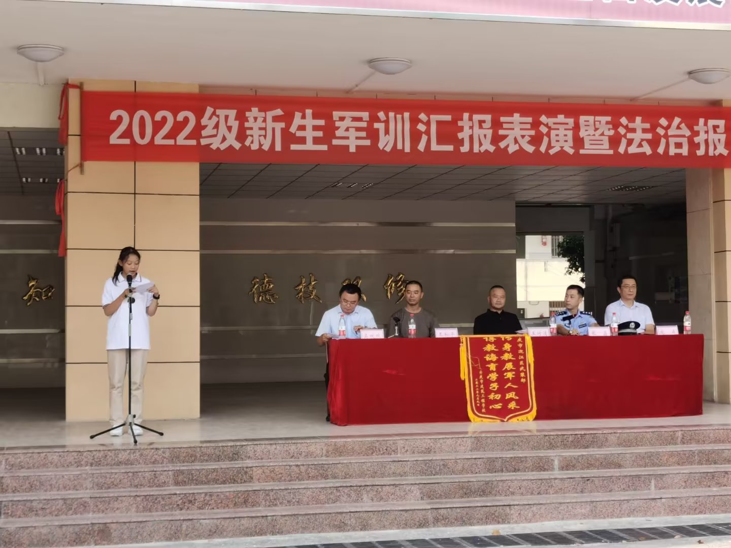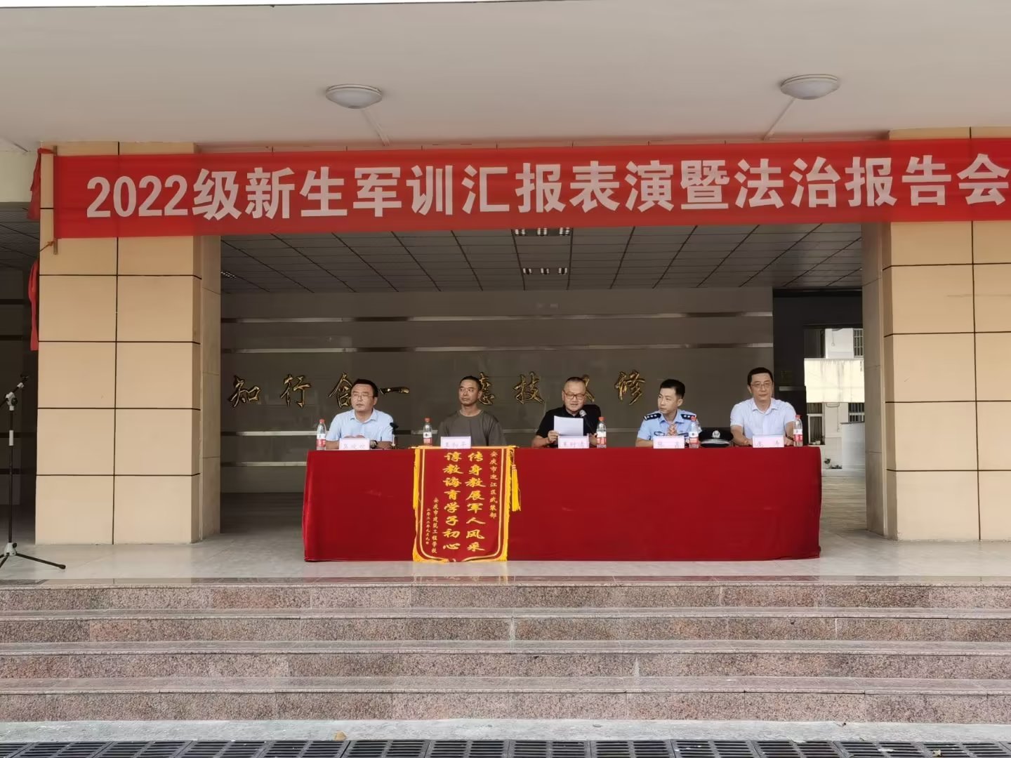 9月9日下午,安庆广播电视大学(安庆建校)2022级新生军训汇演暨法治报告会活动在学校操场隆重举行。校党委委员、副校长王付清,迎江区武装部王和平,华中路派出所副所长张鑫,校保卫处主任庞涛出席此次活动。活动由校团委书记、职教处负责人吴欢欢主持。