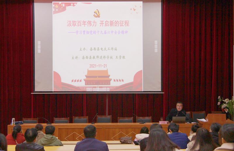 11月21日,岳西县电大工作站组织2021年秋季入学新生线下集中学习党的十九届六中全会精神,县教师进修学校副校长、思政课高级教师王堂根授课。