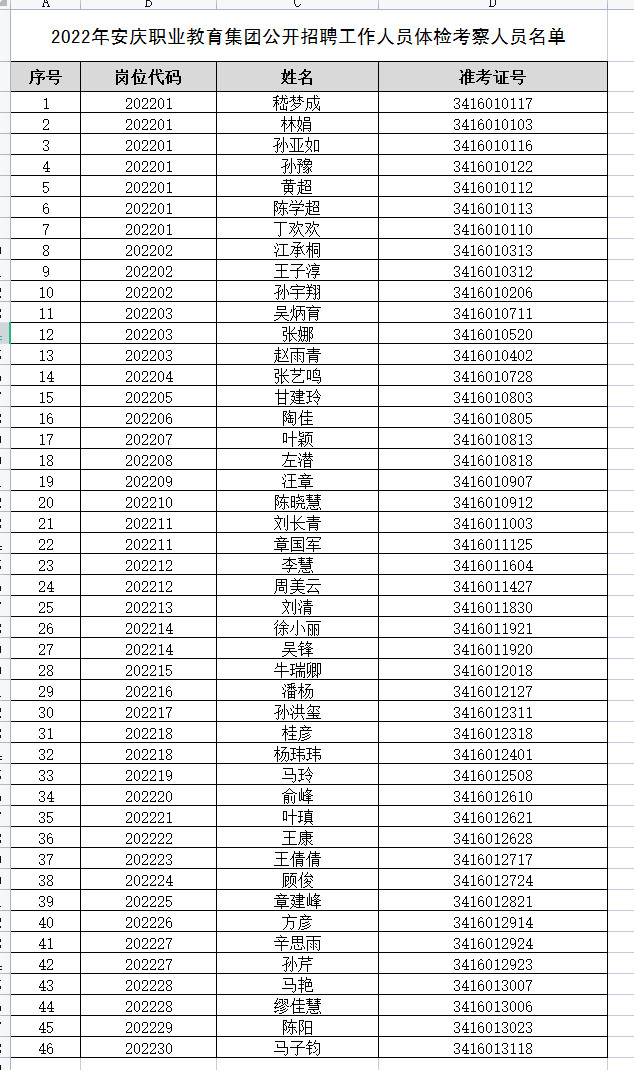 2022年安庆职业教育集团公开招聘工作人员考察、体检工作相关事宜公告