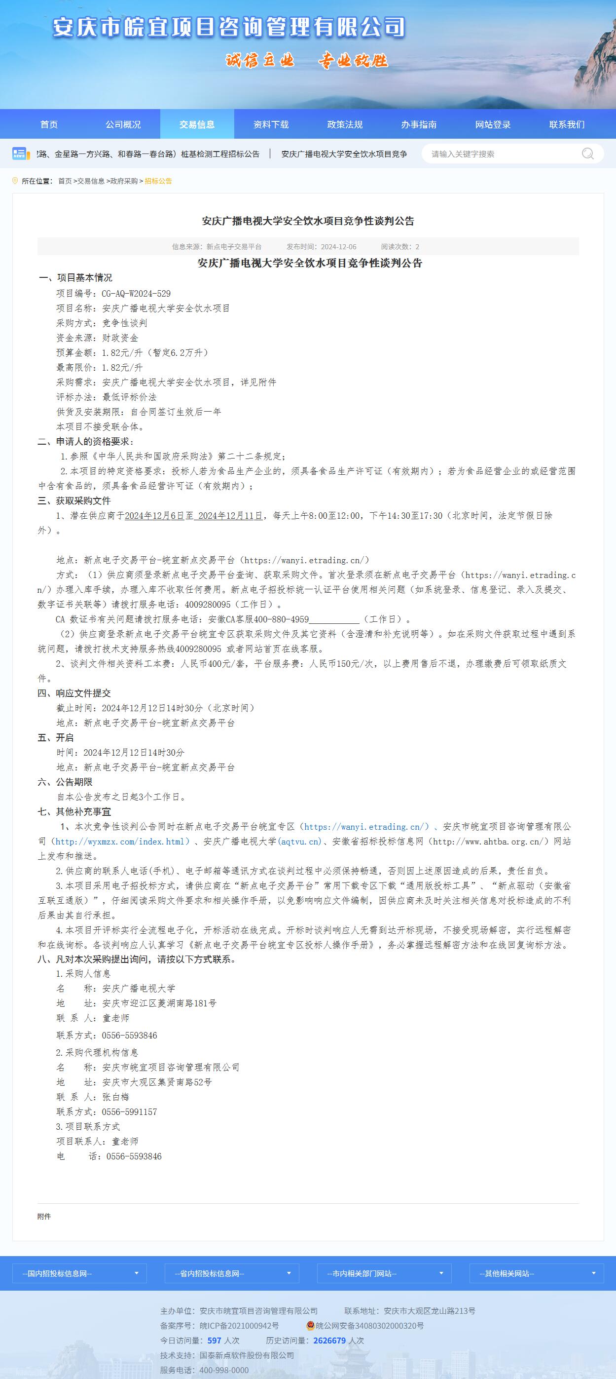 安庆广播电视大学安全饮水项目竞争性谈判公告