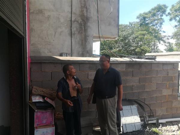 帮扶小组到达村里的时候,恰逢村里停电,炎炎酷暑,周光纯副校长一行就在村委办公室向刚上任的村委副书记虞向前以及村主任蒋云龙询问了前期玉屏村15千瓦太阳能光伏发电、村办卫生室筹建、蒋山文化广场建设等扶贫工程建设进展情况。虞向前副书记介绍:蒋山文化广场建设已经竣工,广场的体育健身器材和路灯正在招标,村办卫生室也已经开工建设,近期村里还将筹措资金对因大雨而冲毁的公路进行抢修,保障村民的出行。