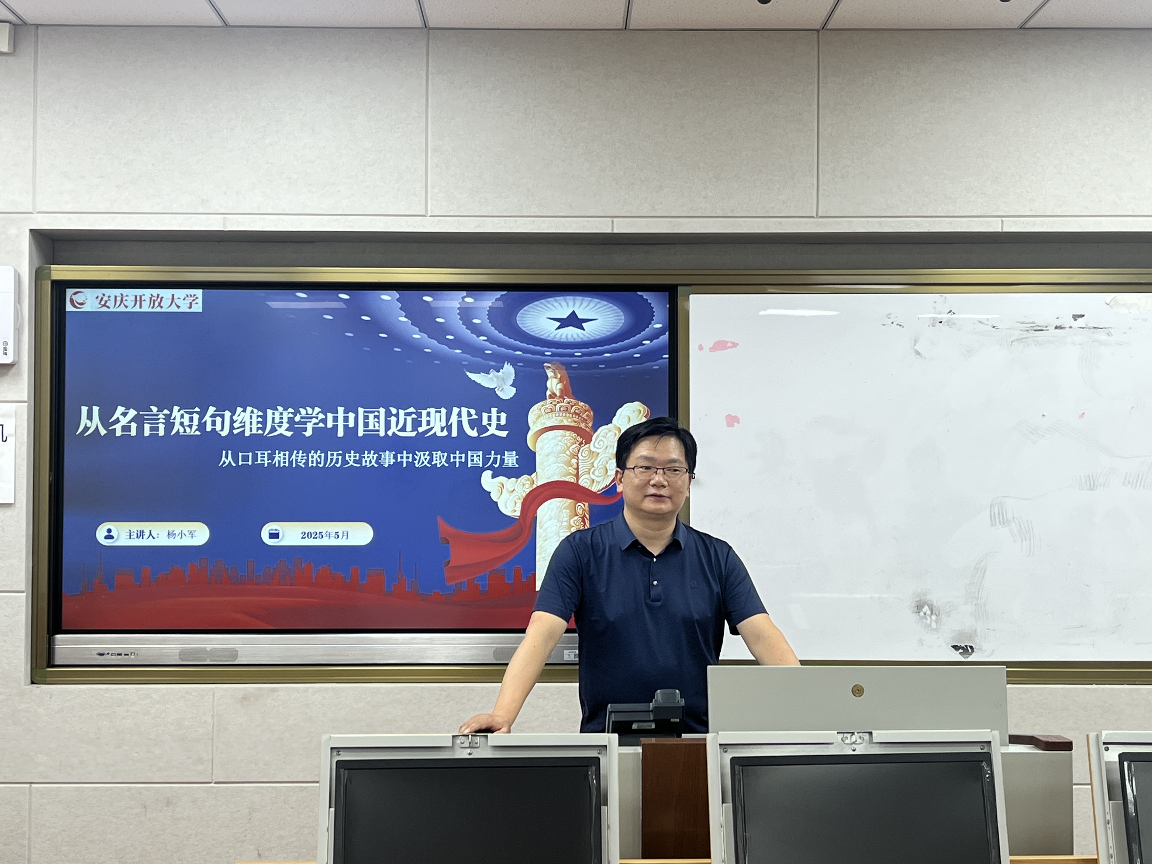 为全面了解思政课教学现状,推动安博站·官方版网站登录入口思政课教学质量持续提升。5月13日晚,校党委书记陈庆玲、党委副书记、校长王佩捷、党委委员、副校长王付清、开放教育25春新生线上线下同步听取了杨小军老师的思政课《中国近现代史纲要》。课堂上,杨小军老师以“从名言短句维度学中国近现代史——从口耳相传的历史故事中汲取中国力量”为主题,以中国近现代史详实的史料展开,以史论结合的授课框架强化学理支撑,实现对《中国近现代史纲要》中的历史认知到新时代爱国主义教育的转化,充分展现了思政课教学活力与实效。同时还详细介绍了《中国近现代史纲要》课程考核评价体系和完成过程性考核、终结性考核的具体要求,帮助新生熟悉国开学习网操作流程,尽快掌握学习技巧。