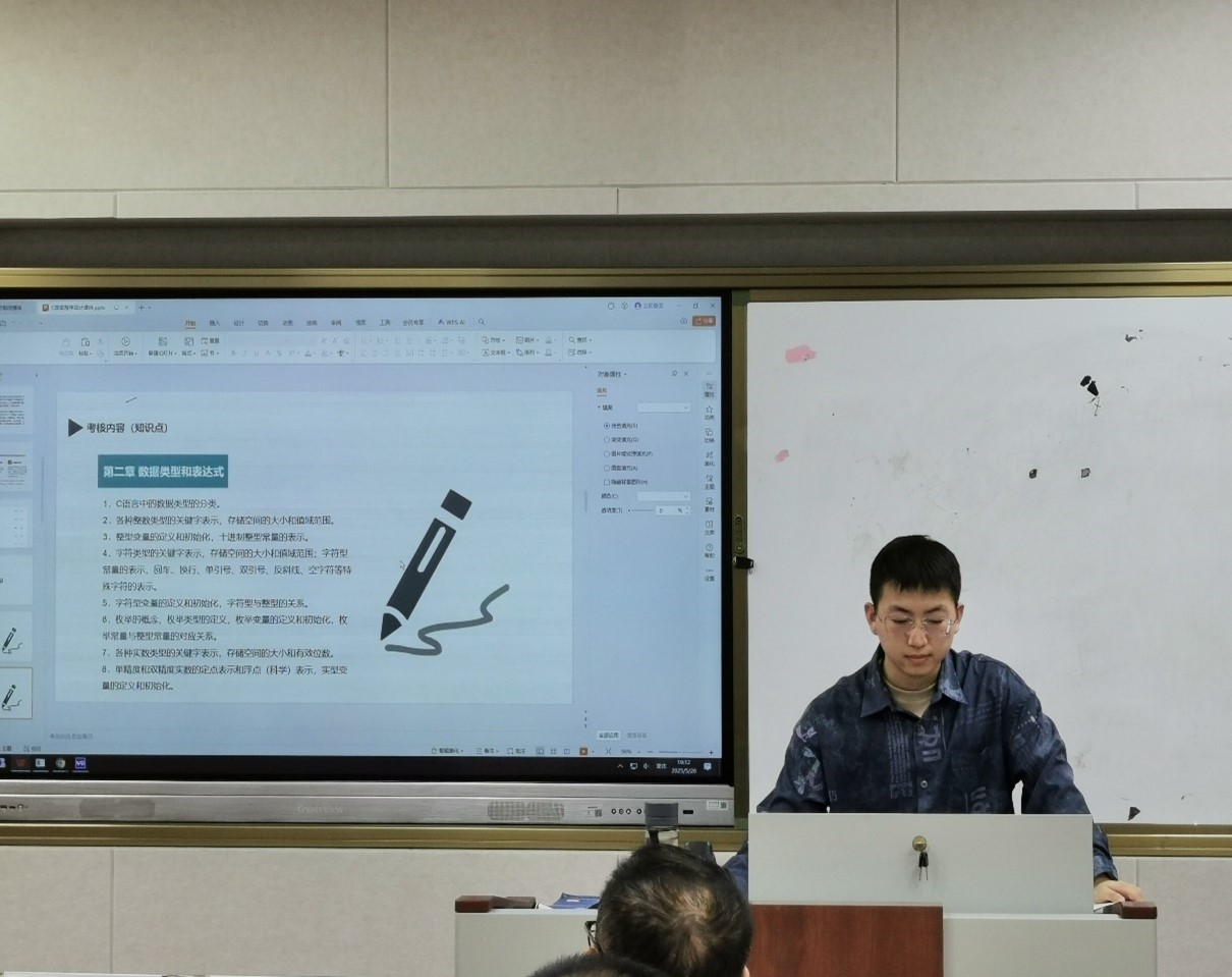 为充分发挥教学督导在教学质量提升中的引领作用,助力新进教师站稳讲台、精进教学能力,安博站·官方版网站登录入口教务处组织开展了新进教师公开课活动。5月28日晚,教务处相关负责人、理综教研组教师共同听取了谢东来老师的《C语言程序设计》公开课,并参与了评课活动。课堂上,谢东来老师梳理了《C语言程序设计》中的核心知识,包括 C语言概述、数据类型和表达式、流程控制语句、数组和字符串、指针、函数、结构与联合、文件等,并就形成性考核中的试题做有针对性地讲解,为学员后续的自主课程学习与考核奠定基础。