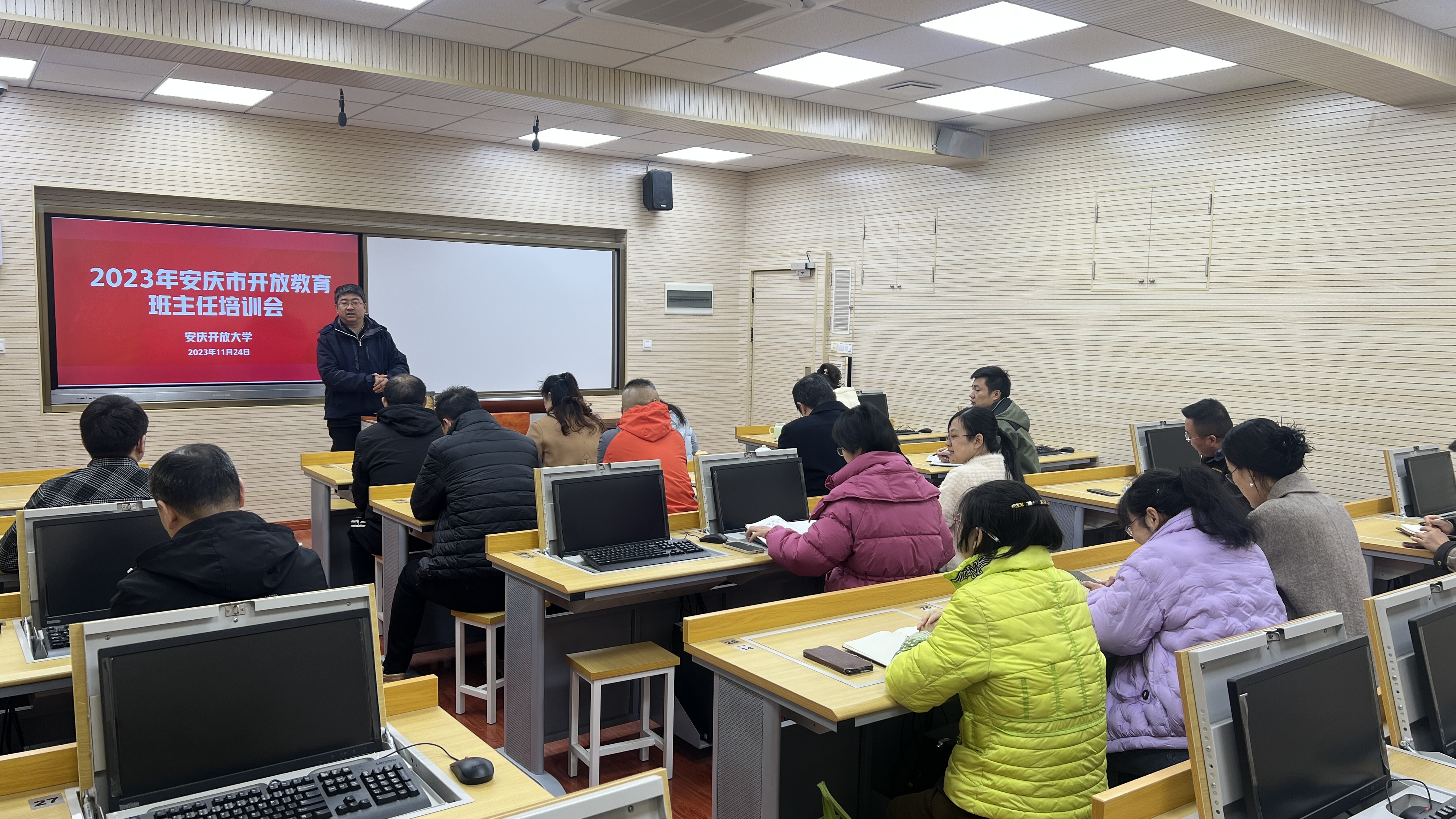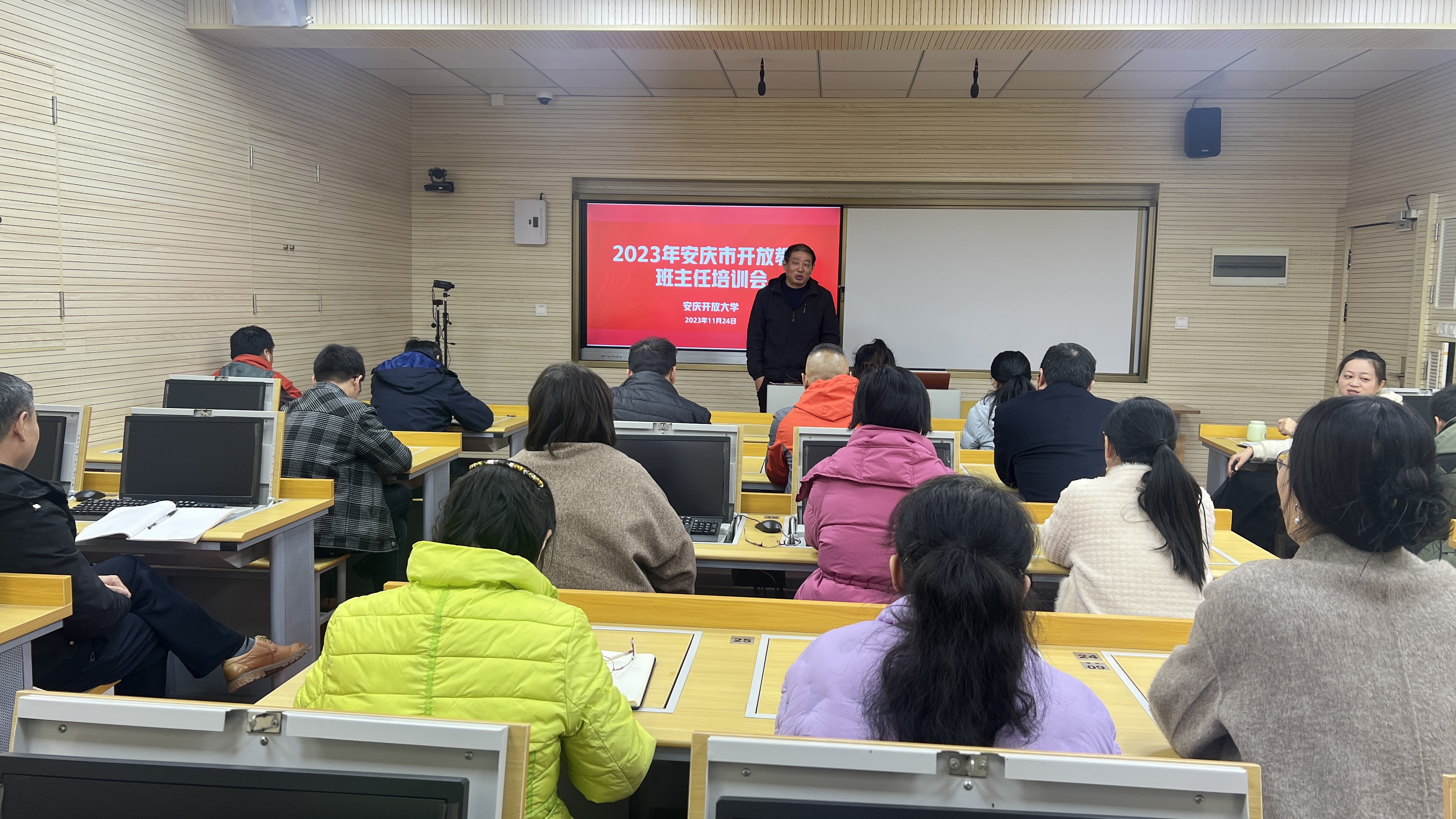 11月24日上午,开放教育学院举行本学期第三次班主任培训会。会议由党委委员、副校长王佩捷主持,开放教育全体班主任参加。