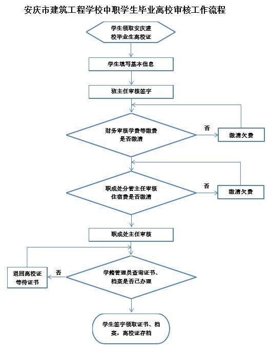 安庆市建筑工程学校中职学生毕业证领取审核工作流程图