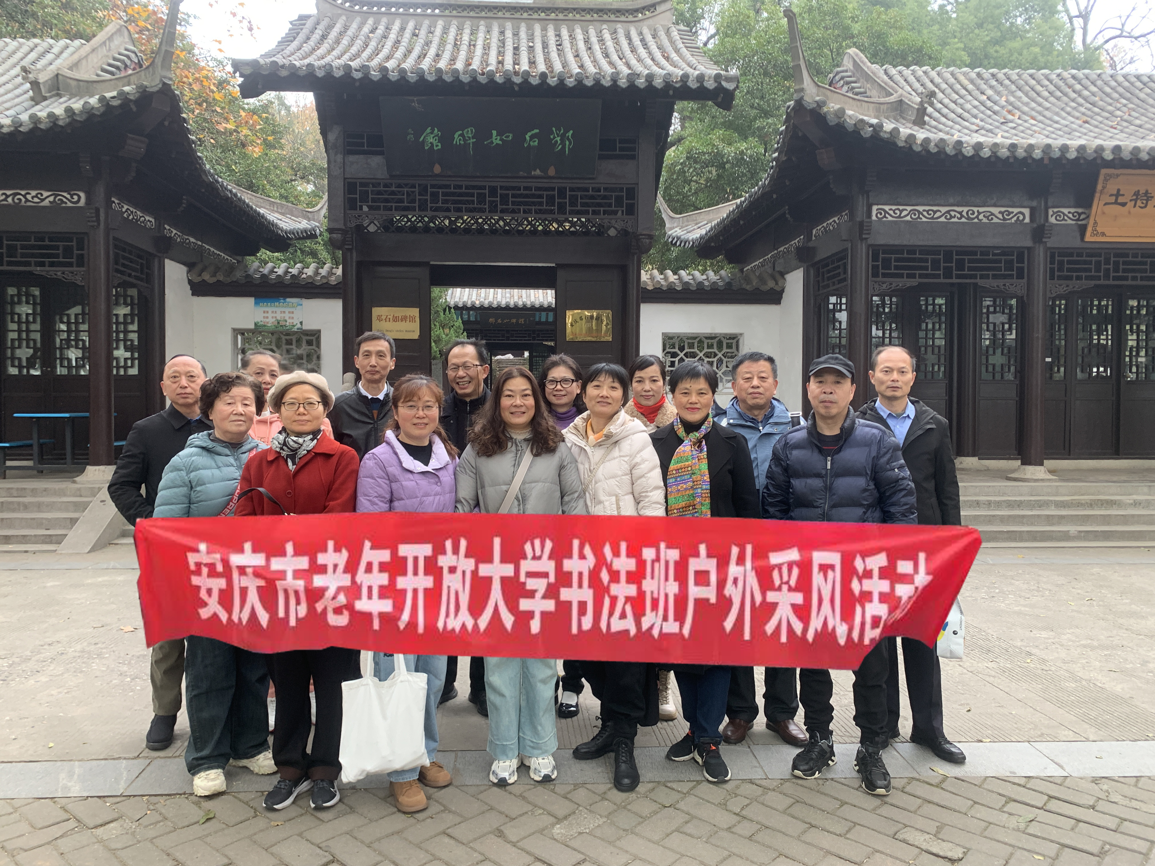 为拓展教学空间,培养学员书法审美能力和提高书法技能, 12月4日上午,安庆市老年开放大学书法班学员们在授课老师王柏翠教授带领下,赴位于菱湖公园内的邓石如碑馆开展研学活动。