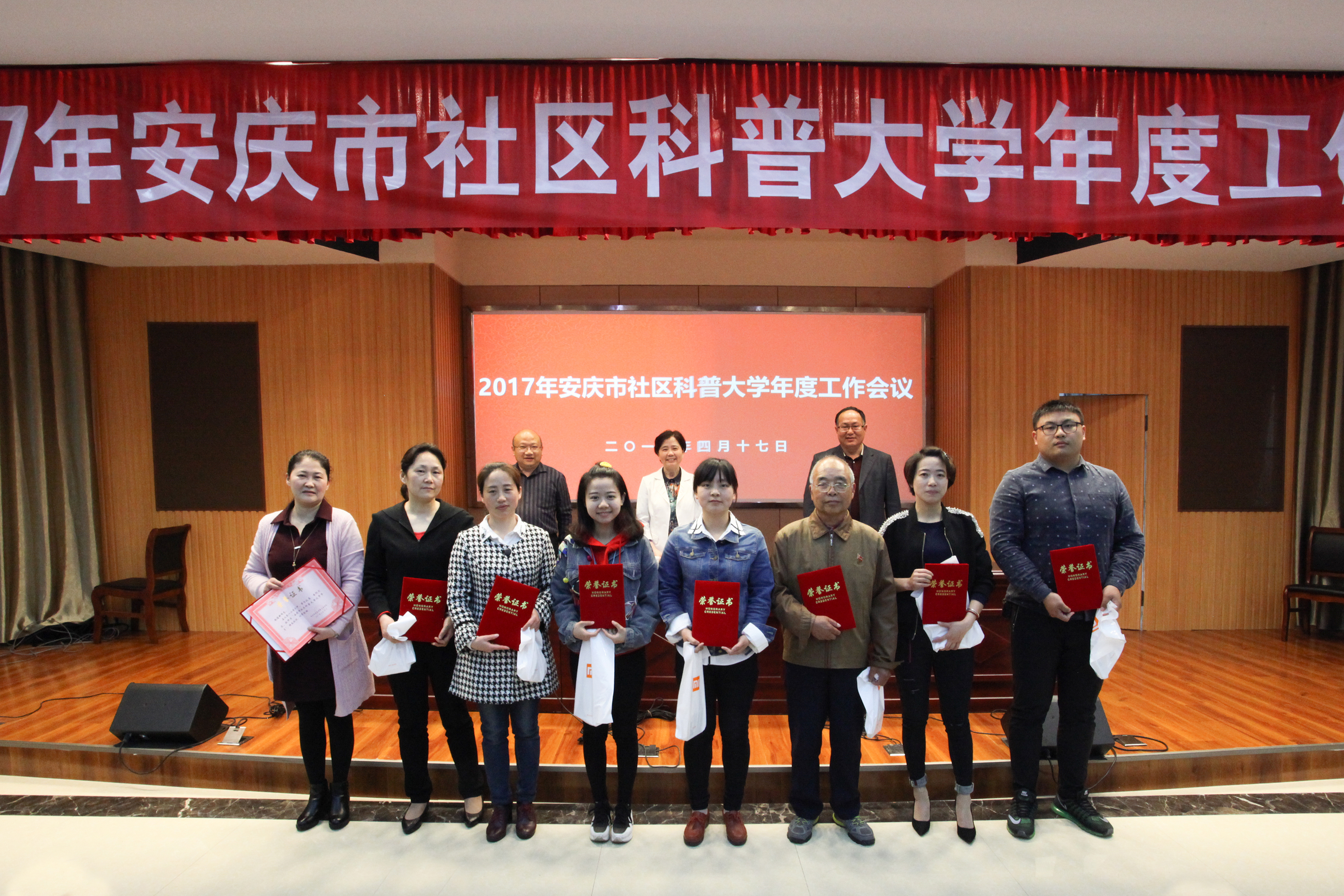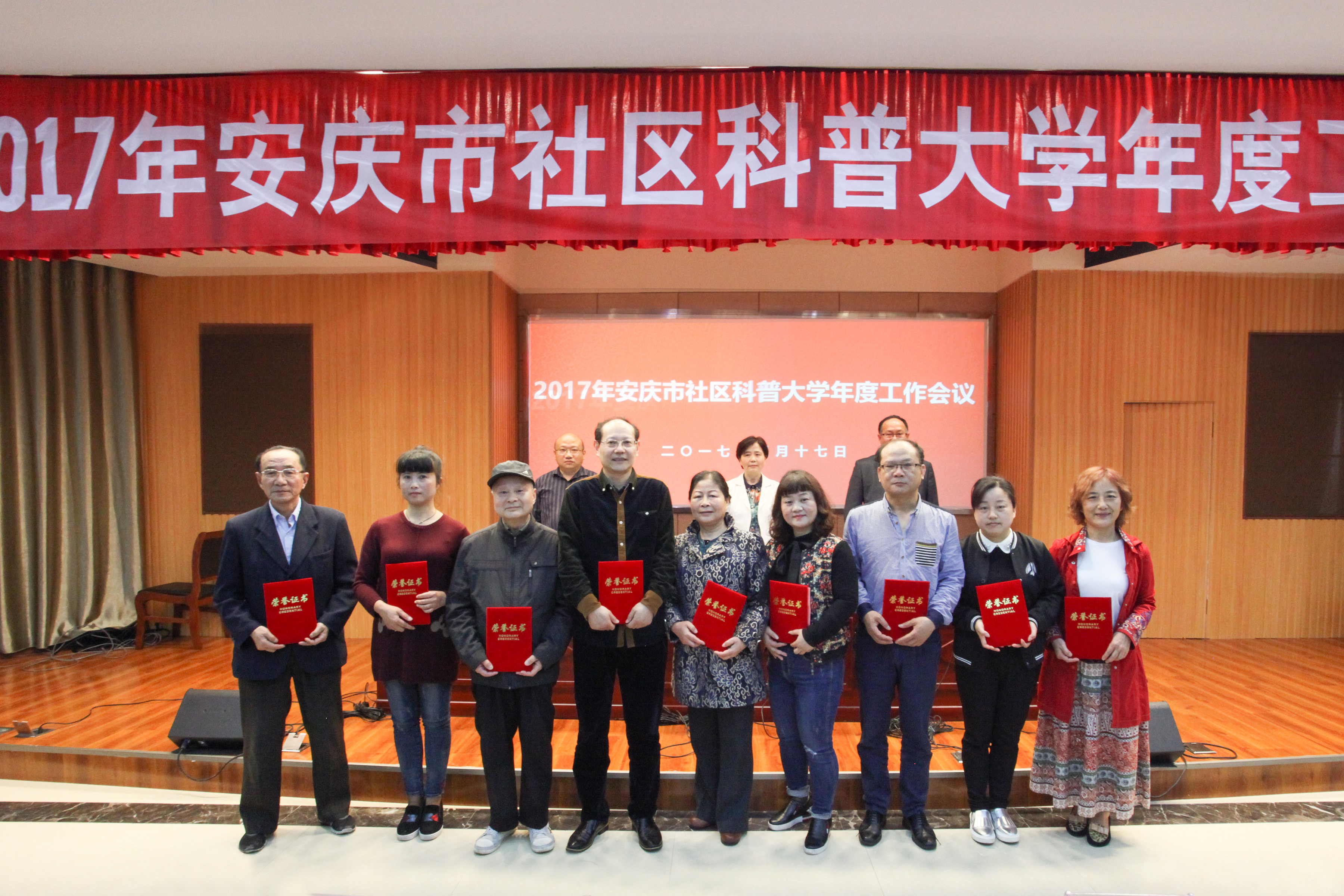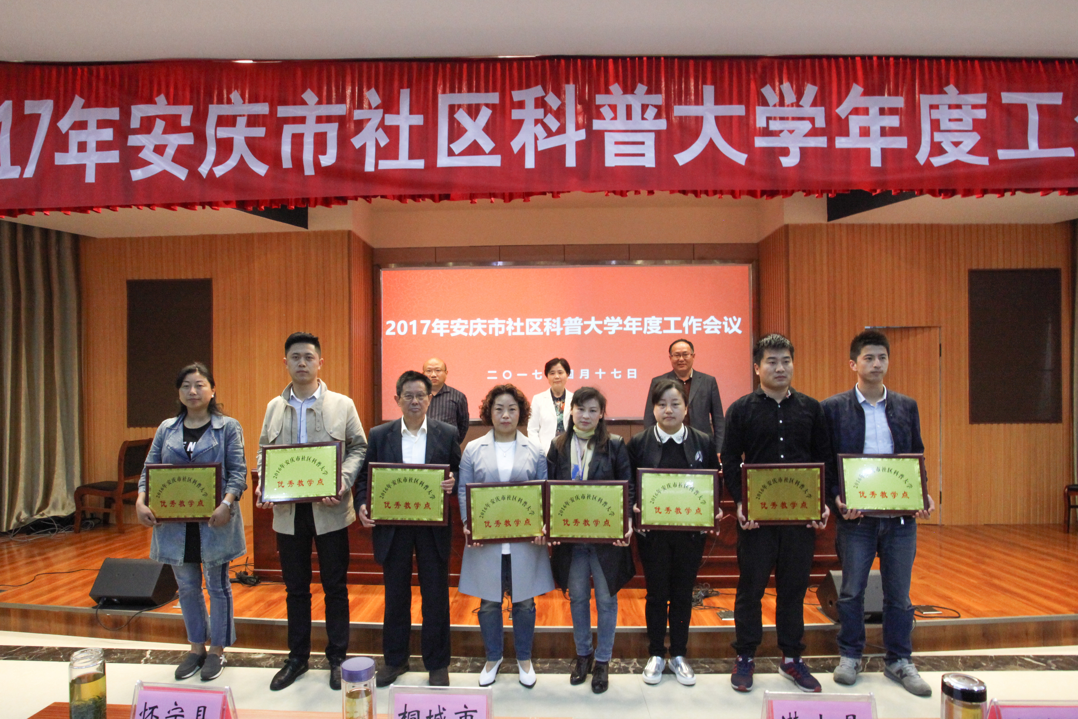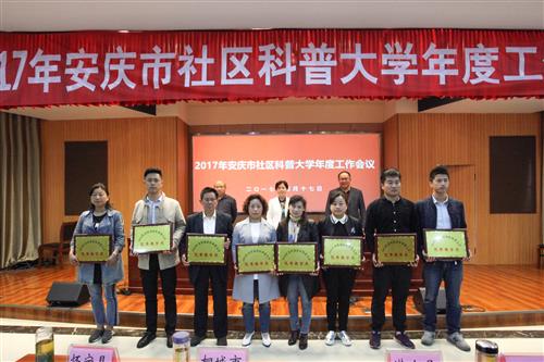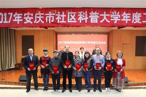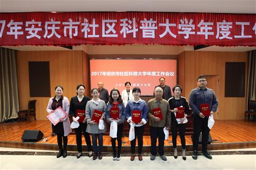 会议2016年安庆市社区科普大学取得突出成绩的10个优秀教学点、17位优秀教师及10位优秀学员进行表彰