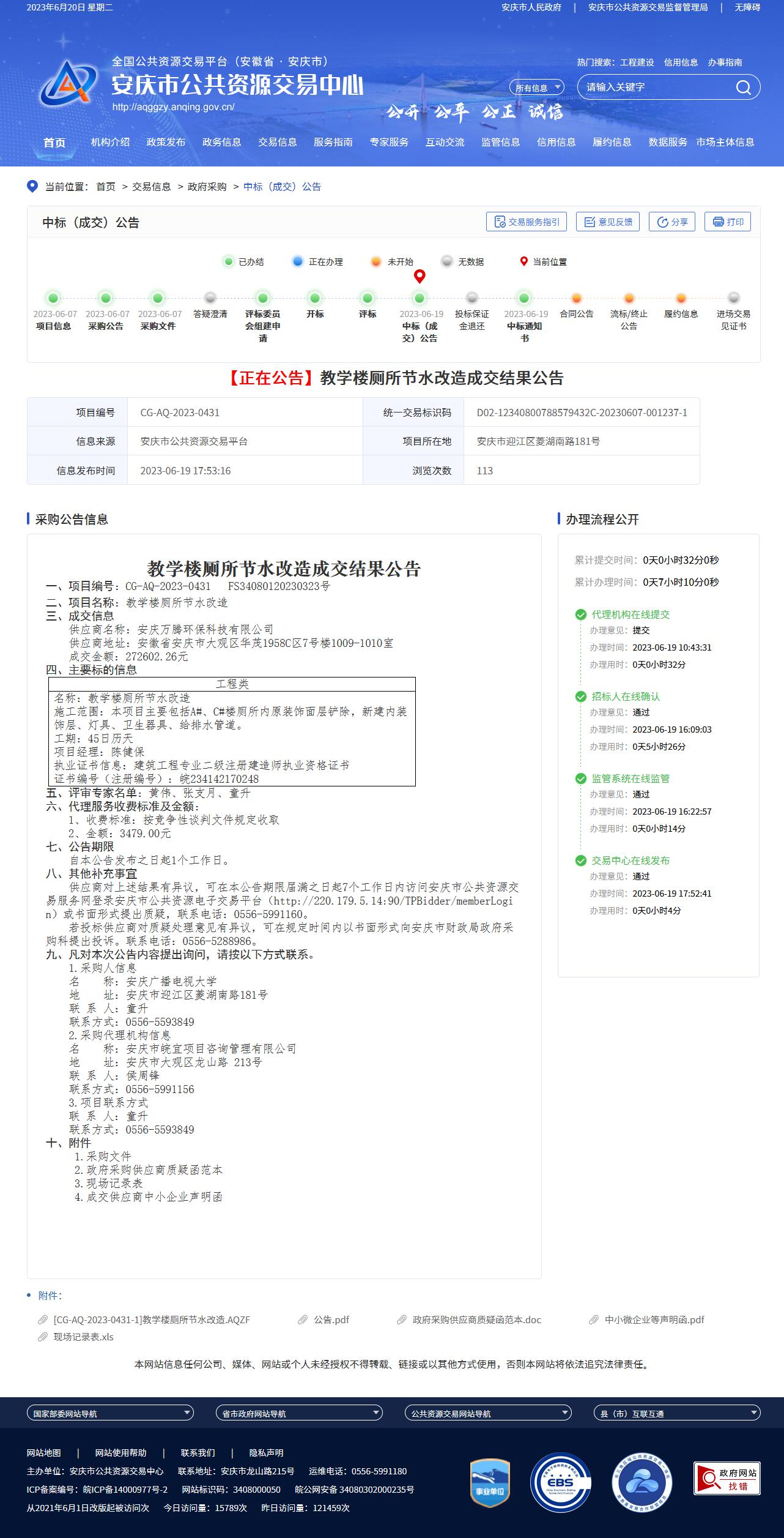 【正在公告】教学楼厕所节水改造成交结果公告