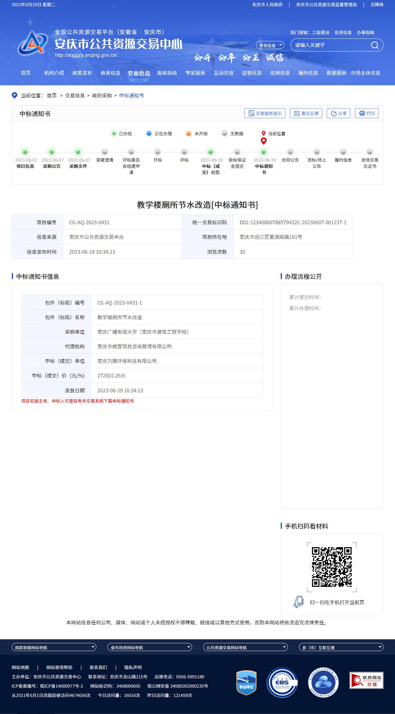 教学楼厕所节水改造[中标通知书]